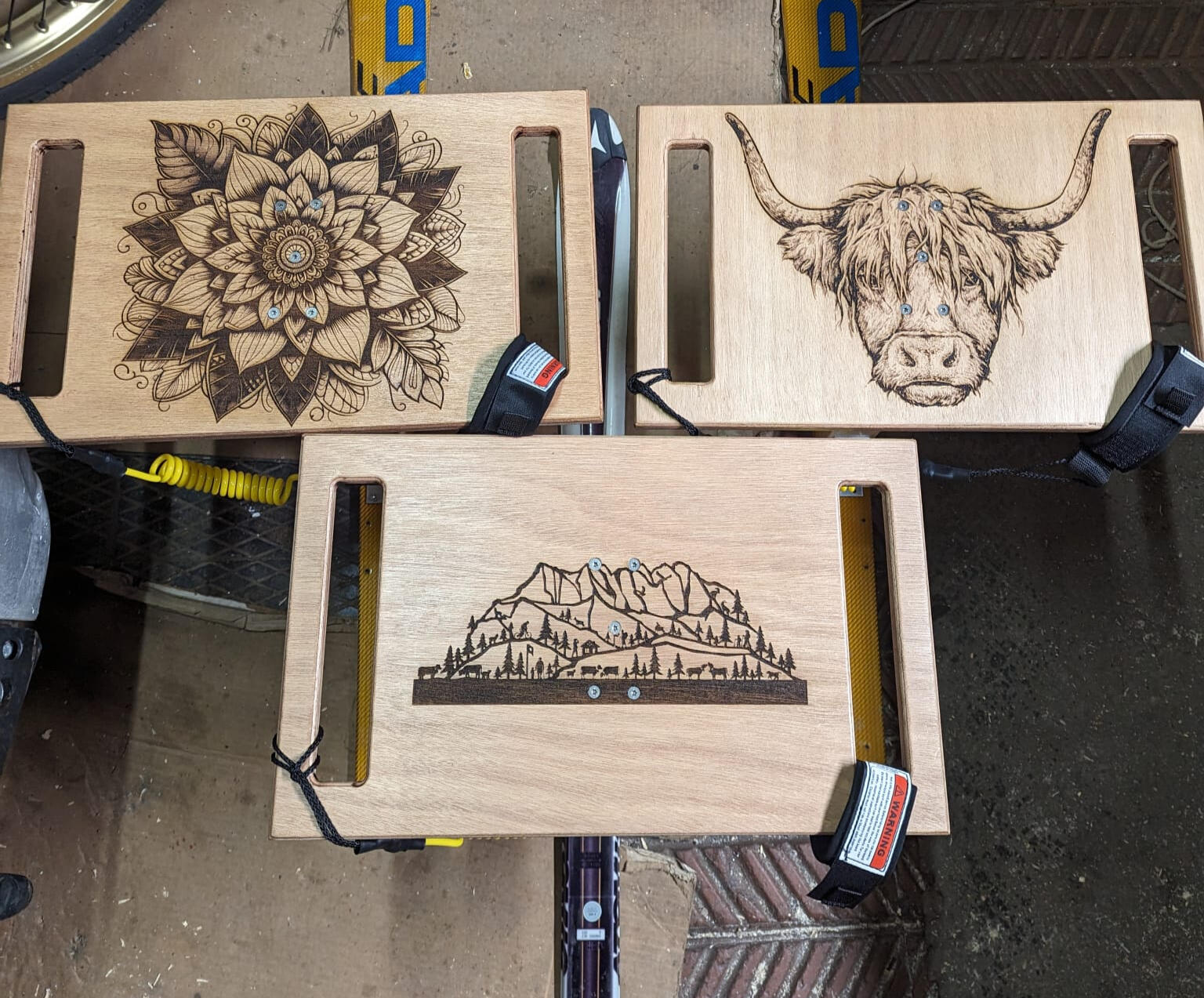 Nous récupérons des ski d'occasion dans les magasins, des fins de location, ski de course pour une saison. Ils sont tous encore en bon état et conviennent parfaitement pour des luges.Le poteau central est gravé sur les côtés avec le nom de notre marque.L'assise est personnalisable, grâce à notre graveuse laser nous pouvons réaliser tous vos souhaits, le niveau de détail est impressionnant.